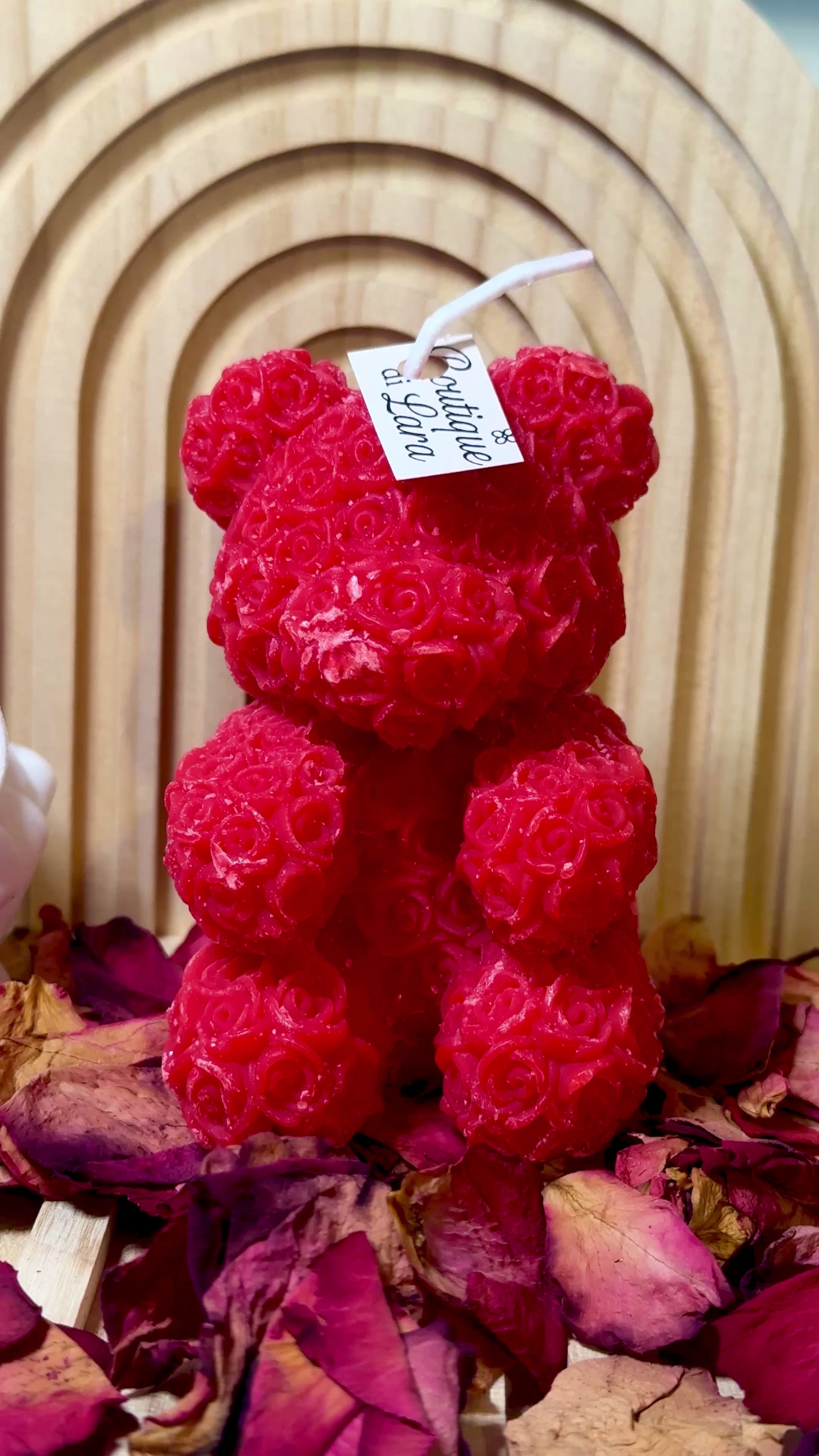 L’Orsetto di Rose Rosso è una candela decorativa in cera di soia naturale, dal design romantico e raffinato.