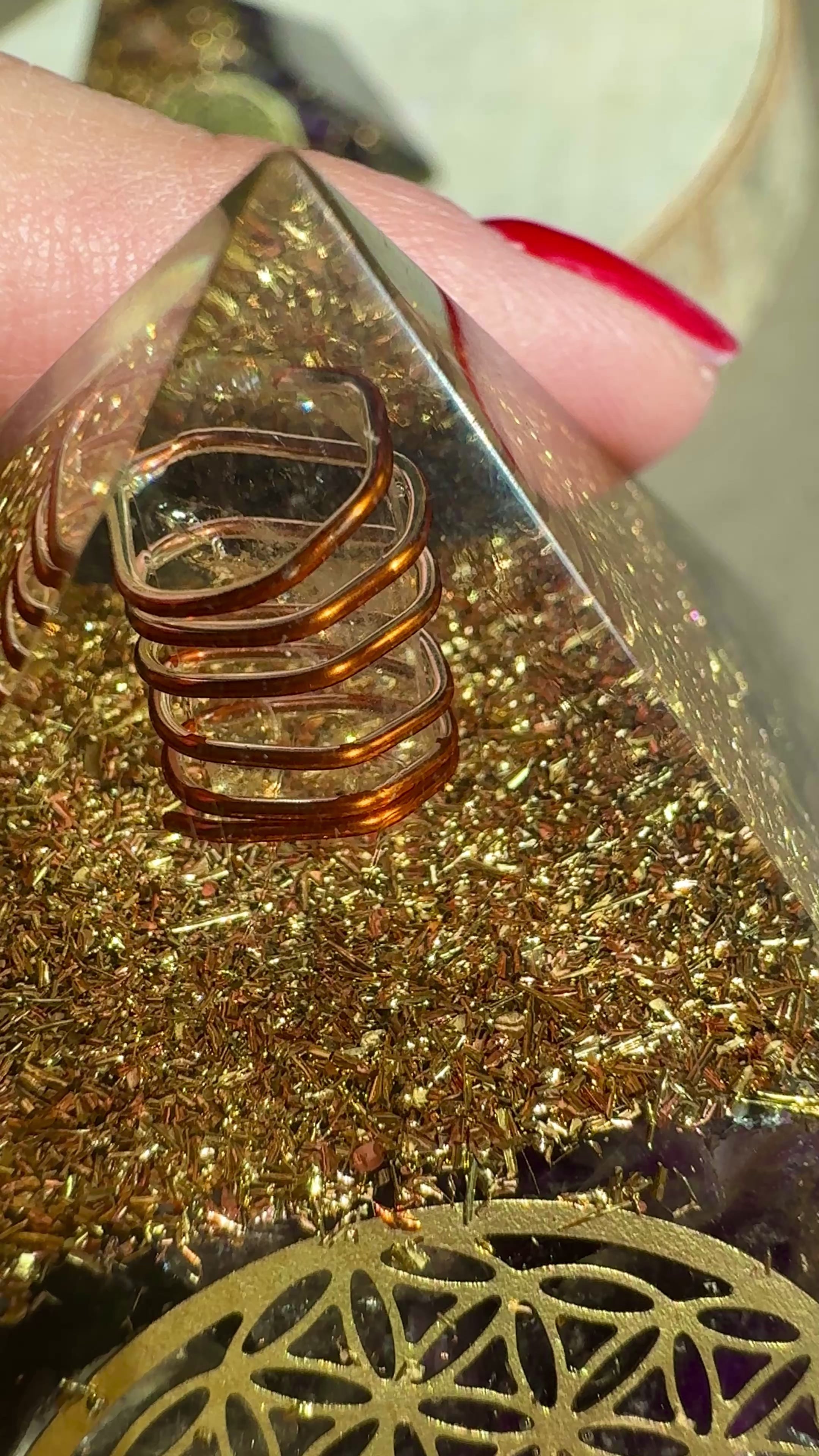 Ritrova equilibrio, calma e connessione spirituale con questa meravigliosa piramide energetica realizzata in resina e ametista naturale. Il simbolo del Fiore della Vita e la spirale in rame intensificano la diffusione dell’energia positiva nell’ambiente.