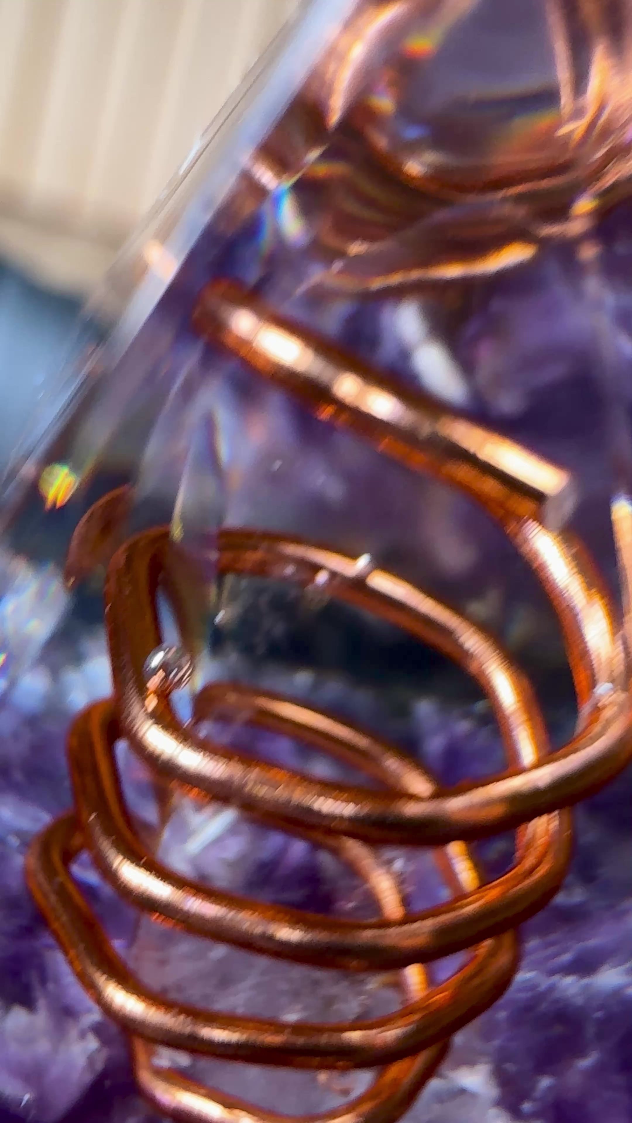 Le spirali in rame amplificano il flusso energetico, favorendo armonia, centratura e purificazione profonda.